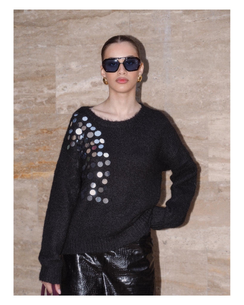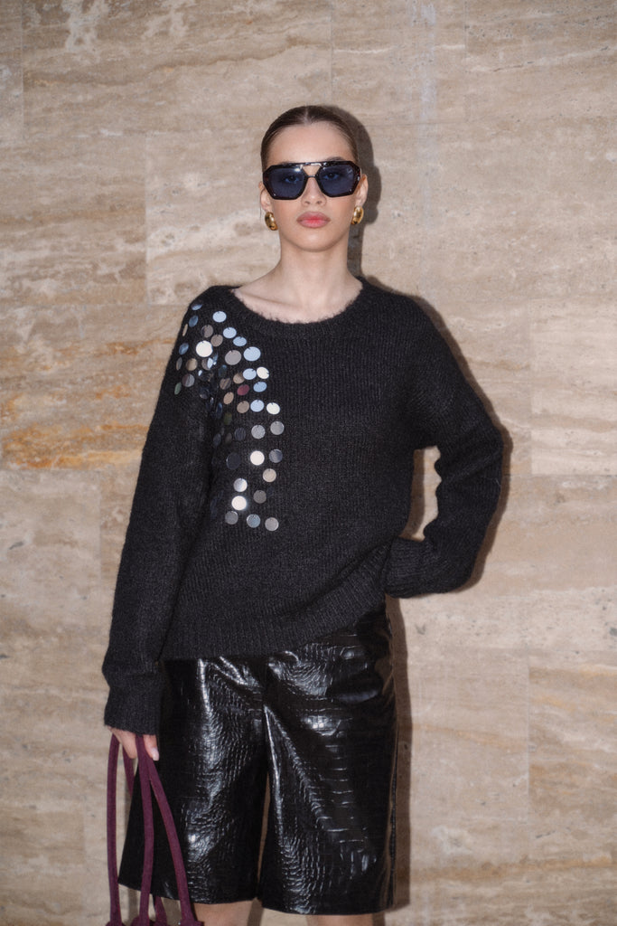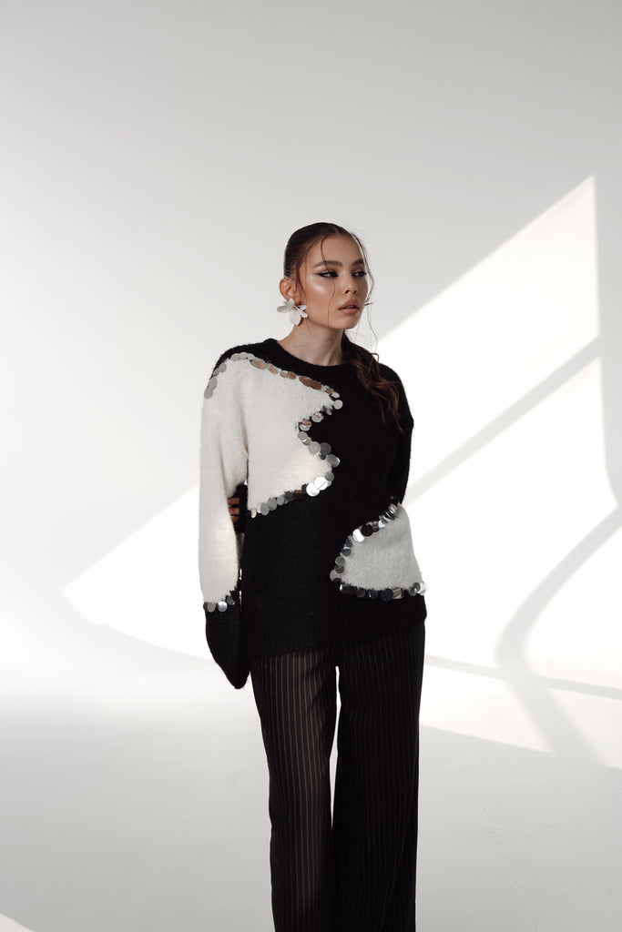 Black & White Contrast Knit with Mirror Sequins