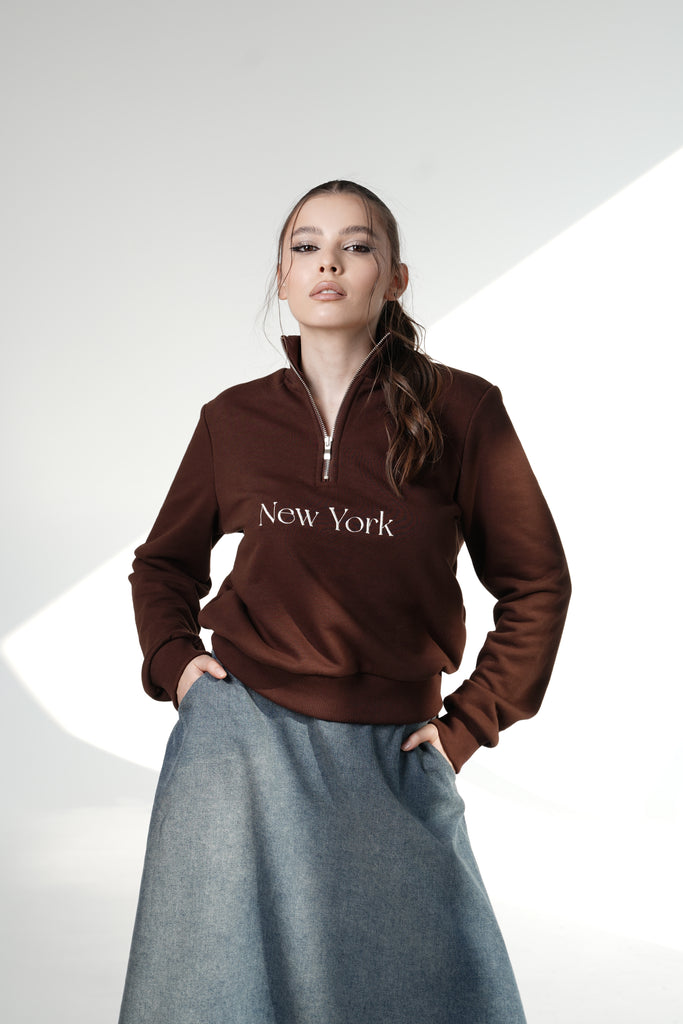 New York Half-Zip Sweatshirt — Chocolate