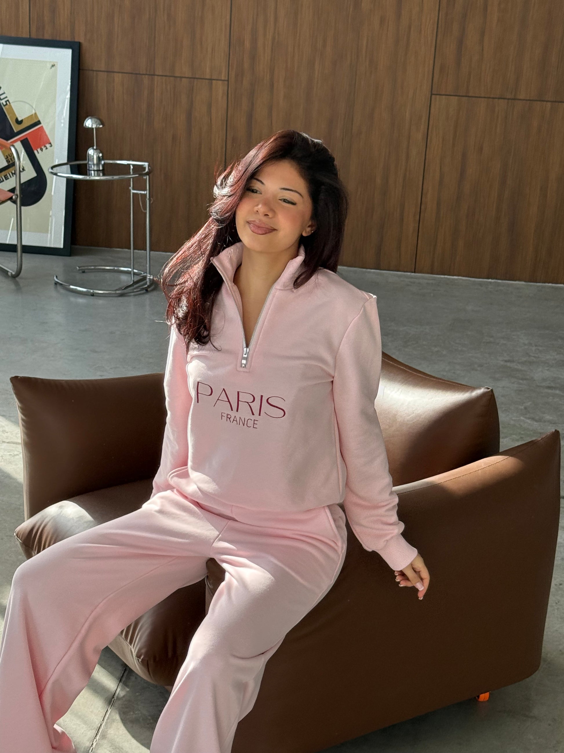 Paris Half-Zip Sweatshirt is crafted from a soft, breathable cotton-blend fabric and designed for everyday ease. Featuring a relaxed fit, high collar with zip closure, and elegant embroidered Italian lettering, this piece blends lounge comfort with modern city style.