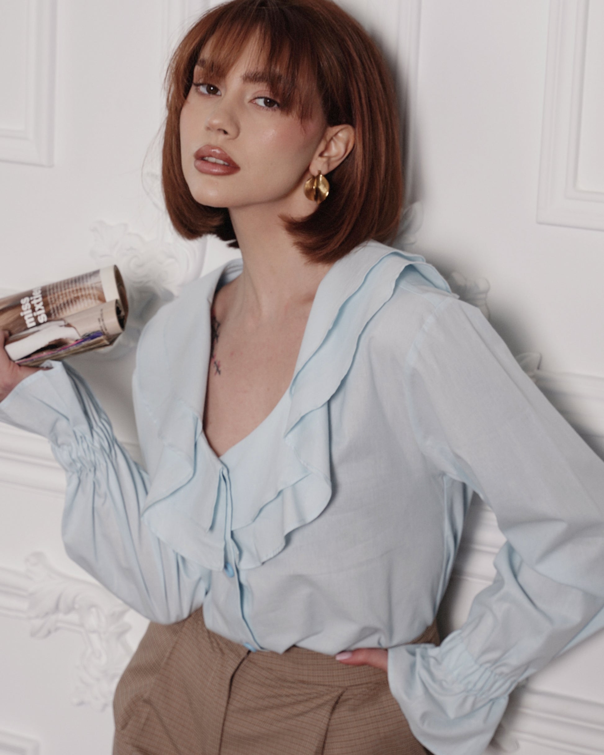 Soft, romantic, and effortlessly chic — our Blue Ruffle Blouse brings a fresh feminine touch to any outfit.