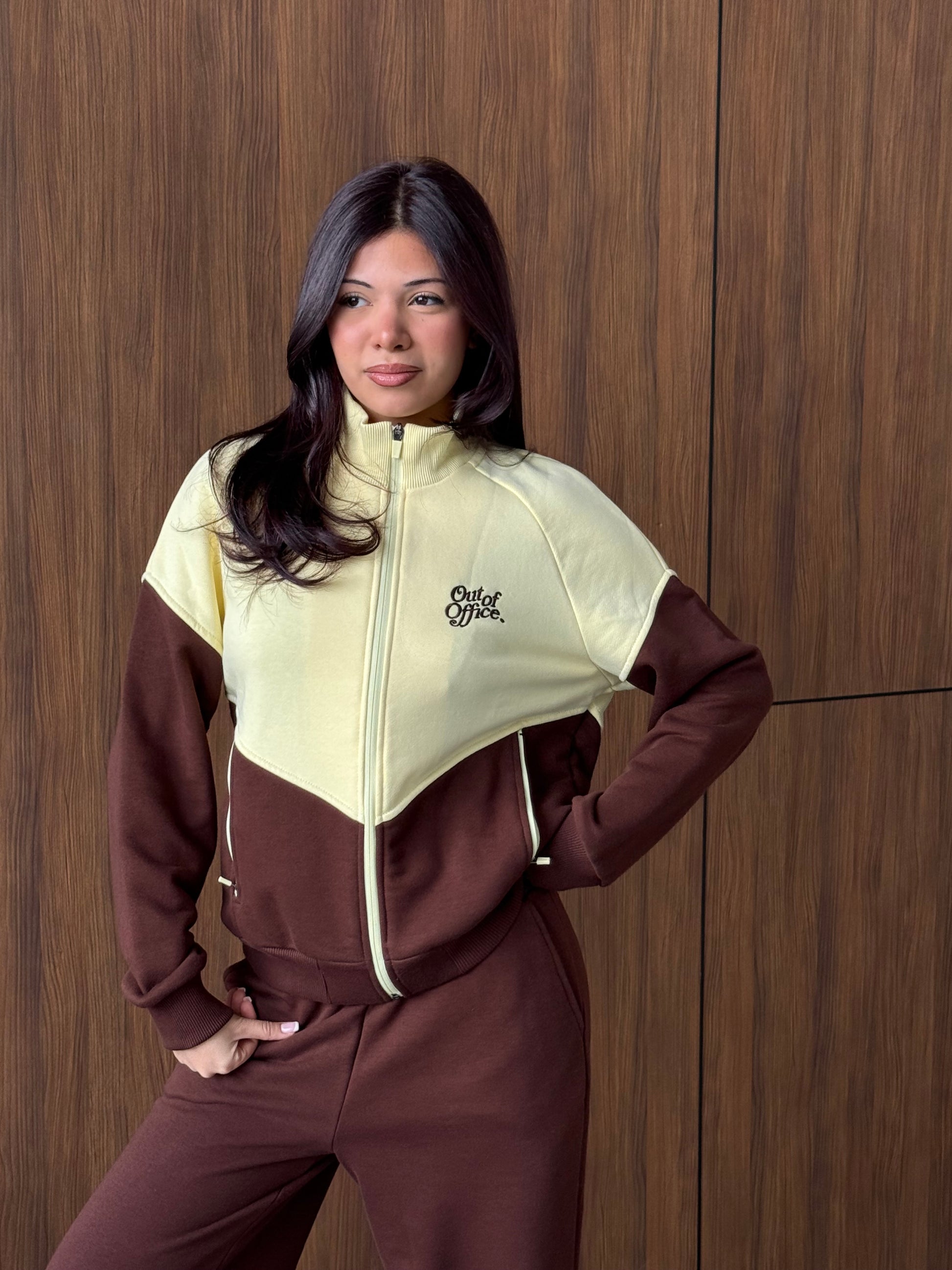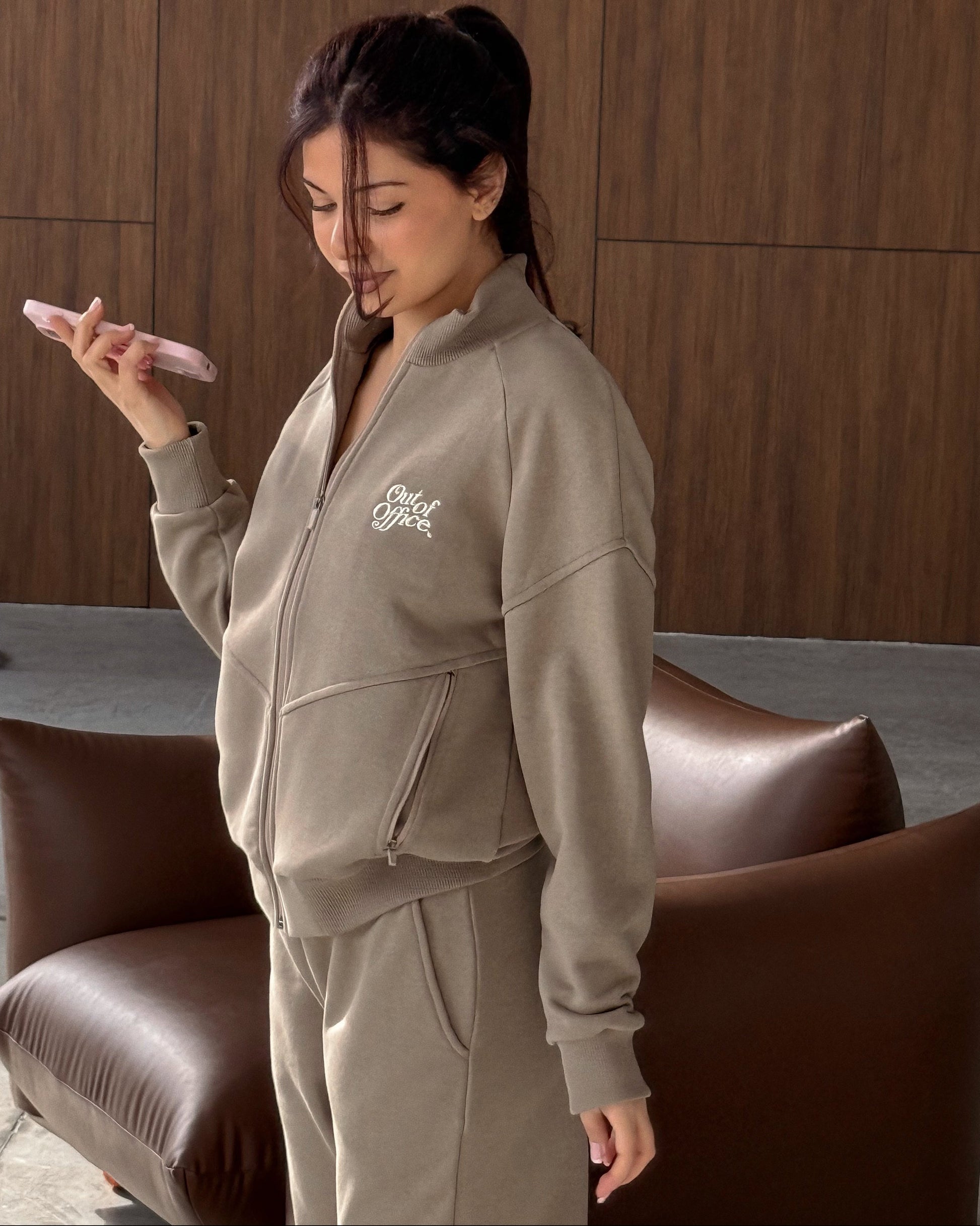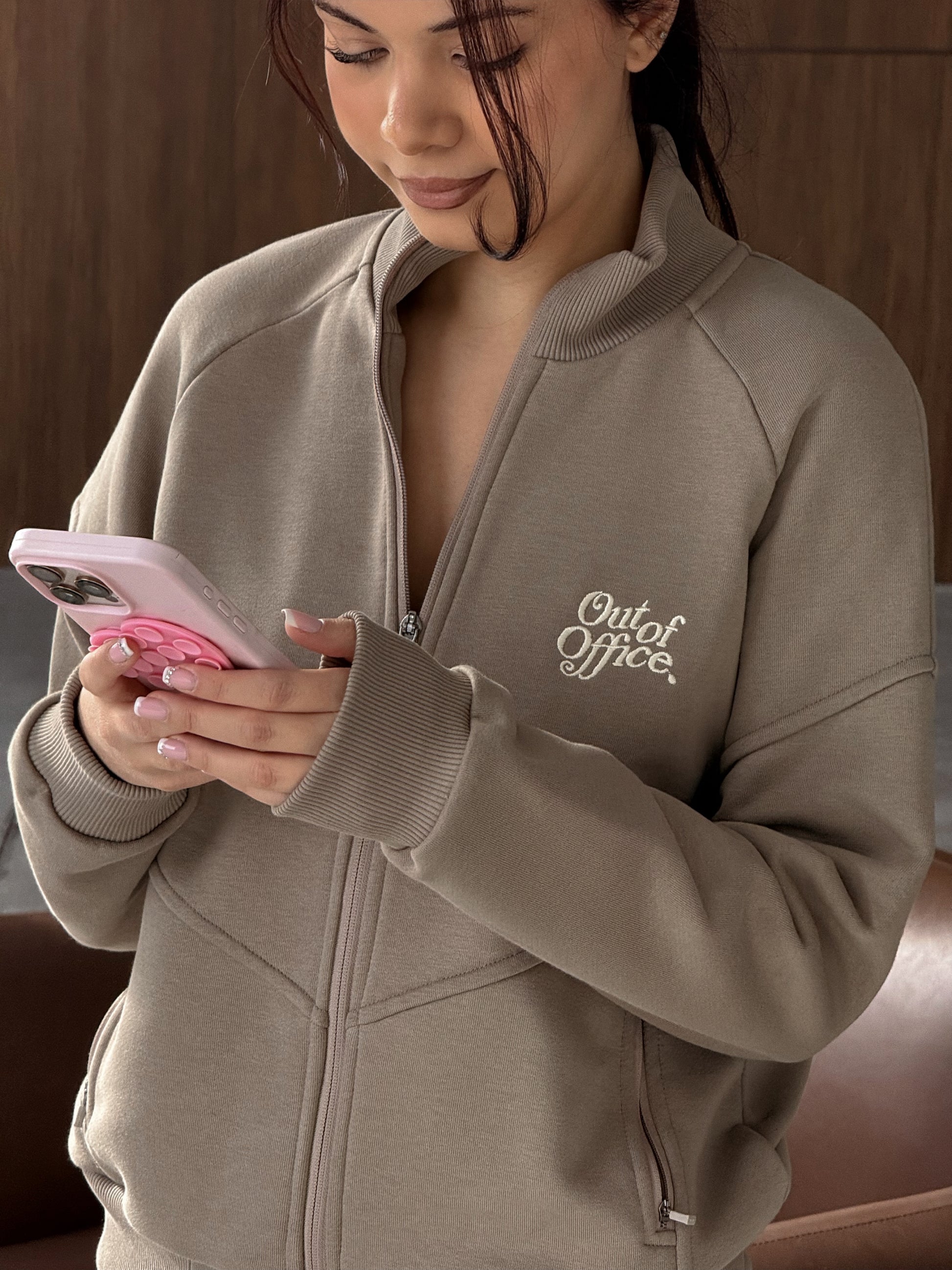 Out of Office Zip-Up Sweatshirt – Taupe Beige