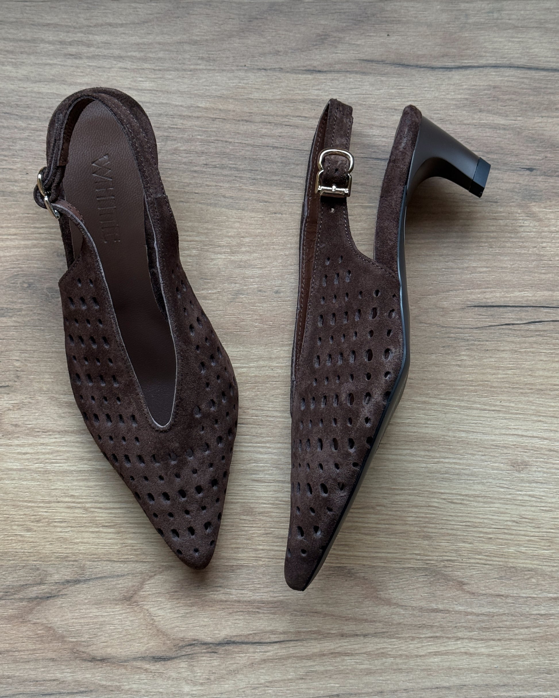 Perforated Suede Slingback Heels – 4 cm